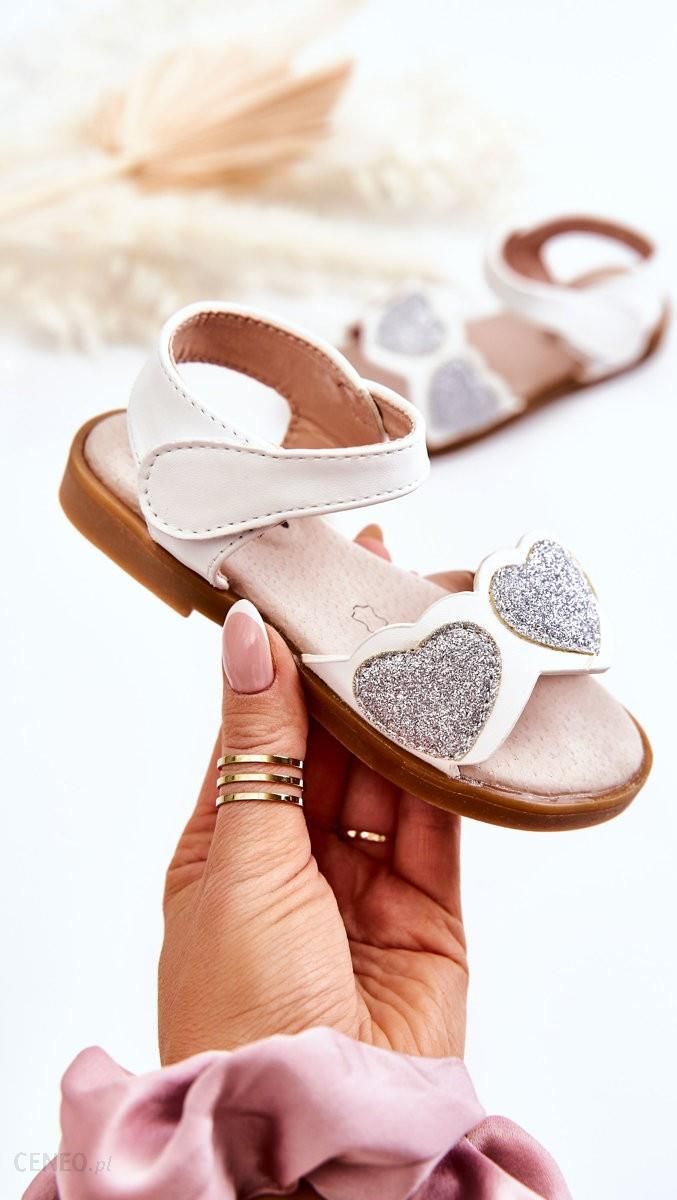 Klasyczne sandałki wykonane z eko skóry z ozdobnymi, brokatowymi serduszkami na paseczku. Posiadają odkryty nosek. Miękka wkładka została wykonana z naturalnej skóry. Klasyczny model zapinany na rzepy, dzięki któremu Twoje dziecko samodzielnie założy buciki. Podeszwa wykonana z gumowego tworzywa jest dodatkowo antypoślizgowa. Ten model będzie idealny dla Twojej pociechy w sezonie letnim! Nie zwlekaj i kup już teraz! Przy wyborze rozmiaru prosimy sugerować się tabelą rozmiarów.24-15/25-16/26-16,5/27-17/28-17,5/29-18cm