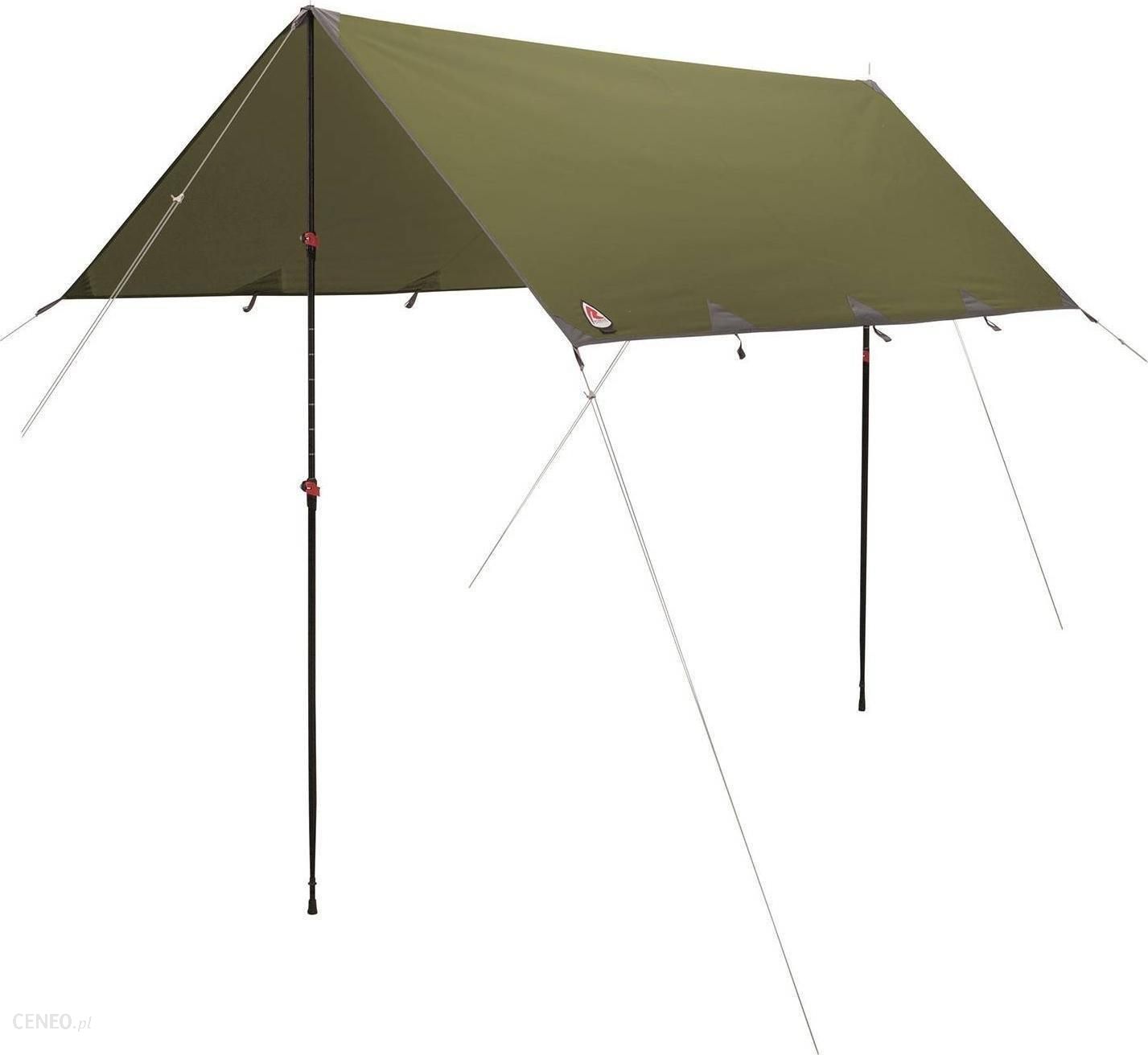 Tarp turystyczny Robens TARP 2.5 x 1.8 mTarp 2.5 × 1.8 m został wykonany z poliestrowego materiału wzmocnionego techniką ripstop. Materiał zastosowany w tym modelu wyróżnia się wodoodpornością na poziomie 5000 mm. Co więcej, tkanina w kontakcie z ogniem nie płonie, lecz się topi, co poprawia Twoje bezpieczeństwo. Całość ma dodatkowo podklejone szwy. Model możesz rozstawić zarówno przy namiocie, dzięki czemu zapewnisz sobie dodatkową przestrzeń użytkową, jak i osobno, by stanowił schronienie w trakcie nocy na szlaku. Tarp możesz również rozstawić na kijkach trekkingowych. Do jego rozstawienia służy 12 punktów mocowania oraz dwa punkty do tyczek. Przy miejscach, w których znajdują się odciągi, zastosowano specjalne wzmocnienia. Całość ma niską wagę i niewielkie wymiary po spakowaniu.Najważniejsze cechy:Tropik wykonany z materiału HydroTex HD RS z poliestru;Materiał w tym tarpie wykonano w technice ripstop;Tkanina ma wodoodporność na poziomie 5000 mm słupa wody;Materiał HydroTex HD RS w kontakcie z ogniem nie płonie;Podklejone szwy;Tarp ma 12 punktów mocowania odciągów;Model ma również 2 punkty do mocowania tyczek;Odciągi umieszczone w rogach oraz przy otworach przy grzbiecie;Wzmocnione punkty przy pętlach na odciągi;Niska waga (ok. 600 g) i niewielkie wymiary po spakowaniu (44 x ø 9 cm);Wymiary po rozłożeniu: 250 x 180 cm.Uwaga: kijki nie są elementem zestawu.